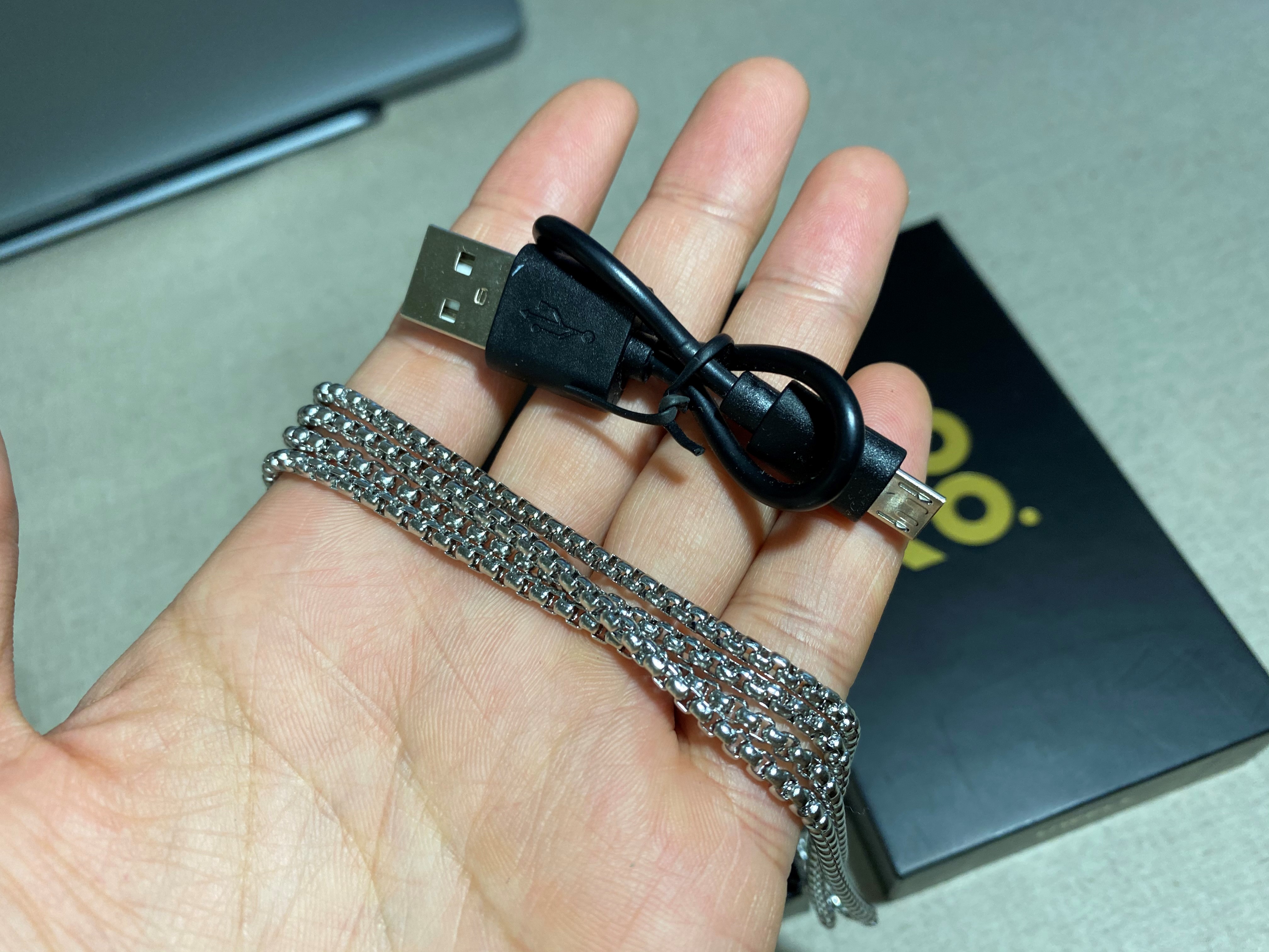 KoKo 전용 충전 USB와 목걸이 체인이 있습니다.