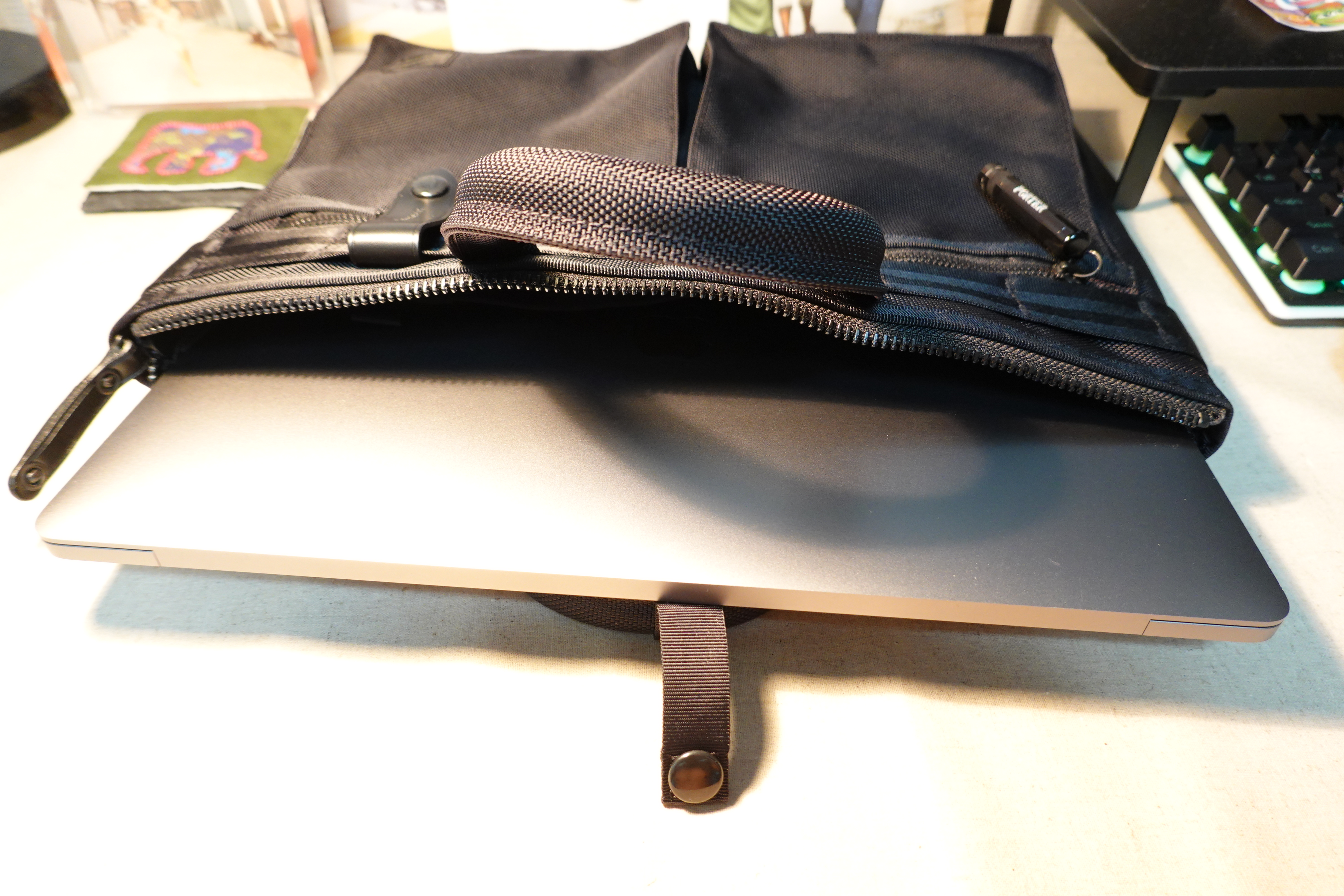 그래서 맥북을 넣으면 내부 포켓을 뒤적이기가 매우 힘들어집니다.
