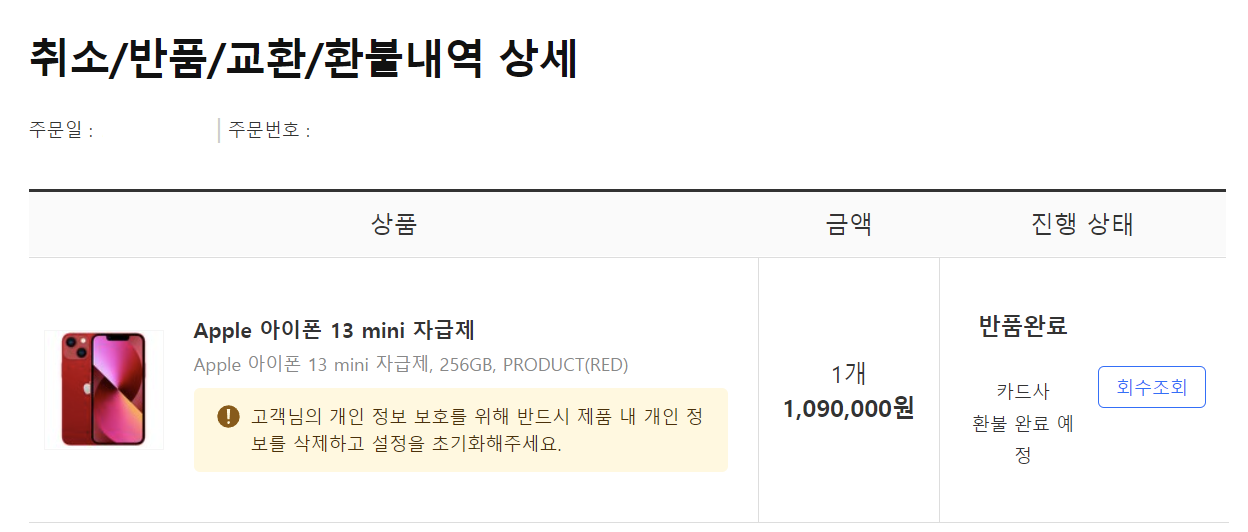 반품을 신청합니다.