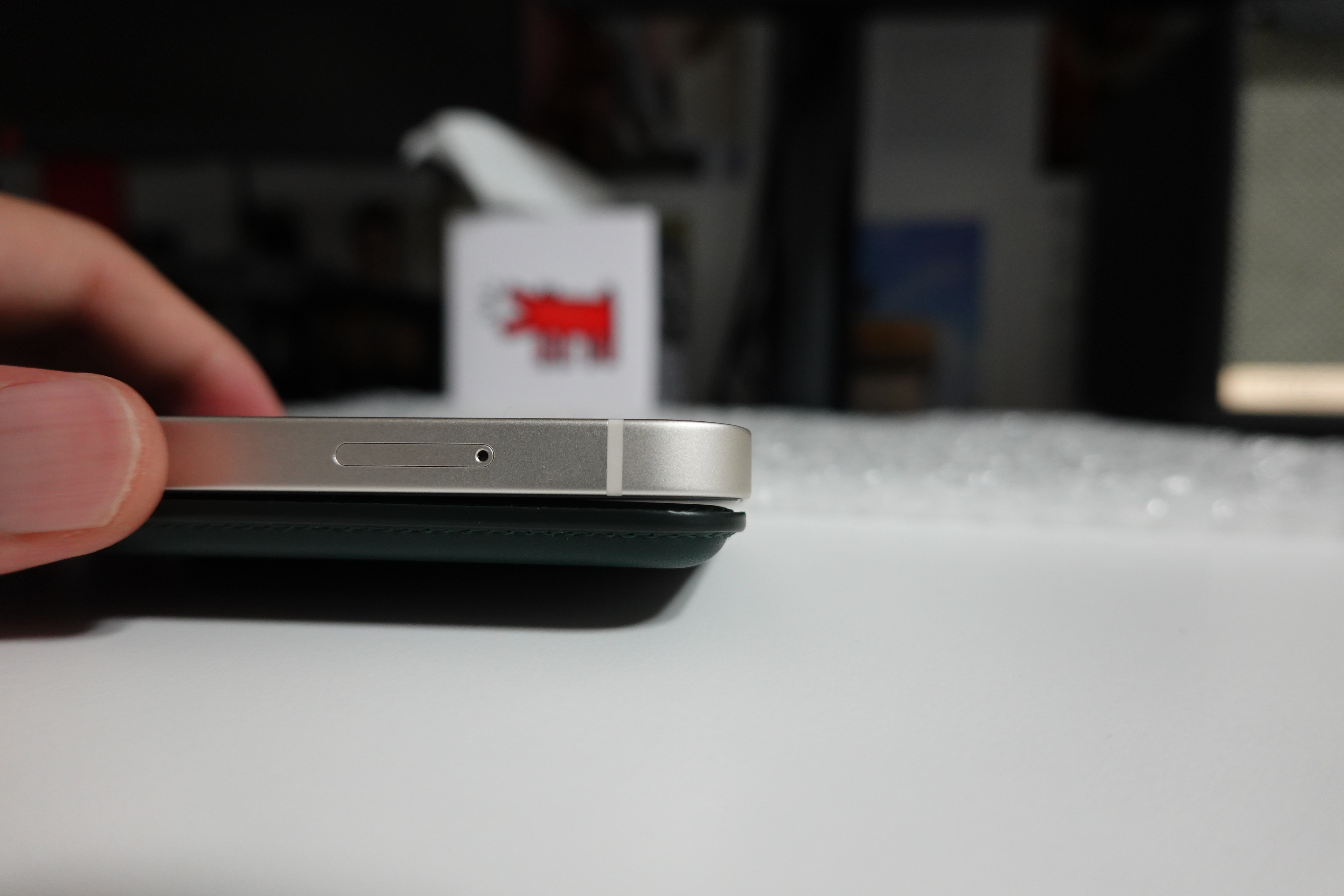 카드지갑의 하단이 아이폰과 맞닿아 있지 않고
