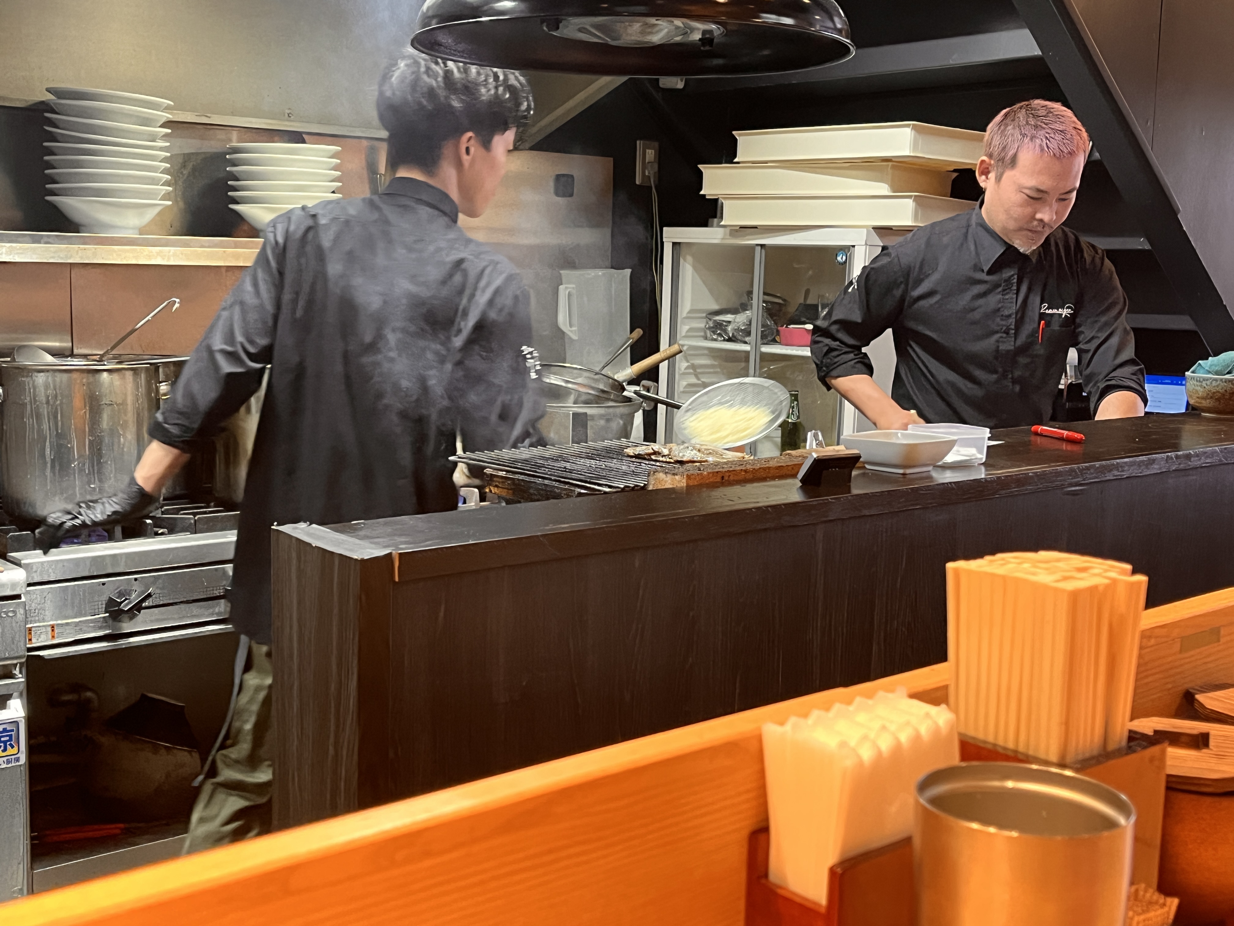 사진의 가운데를 보시면 차슈를 굽고 있습니다.