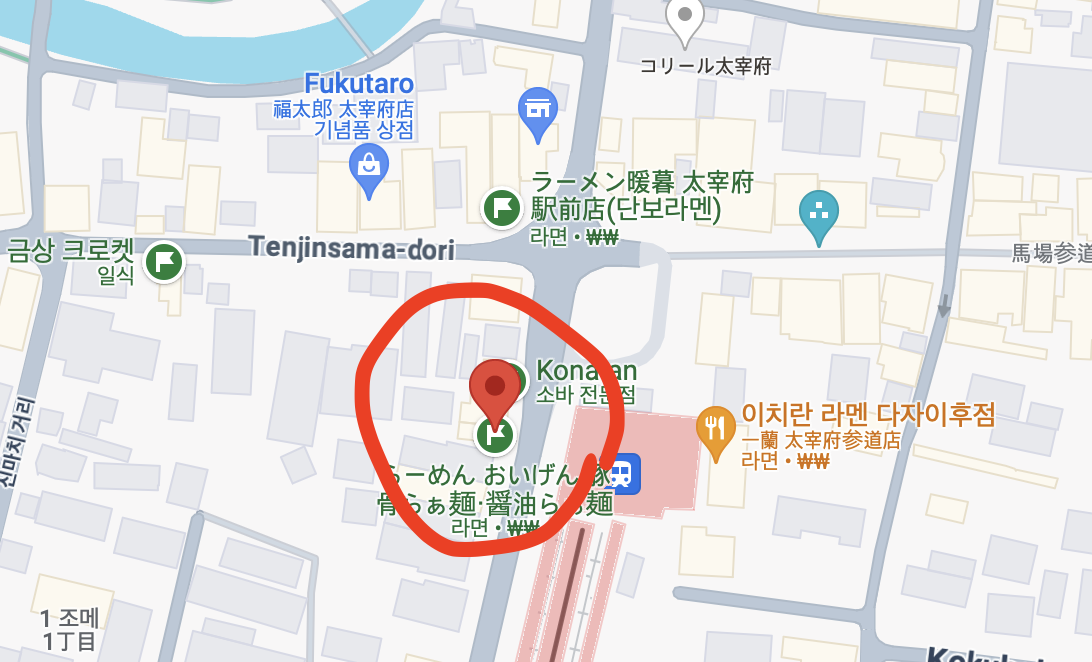 다자이후역 바로 건너편에 있습니다.