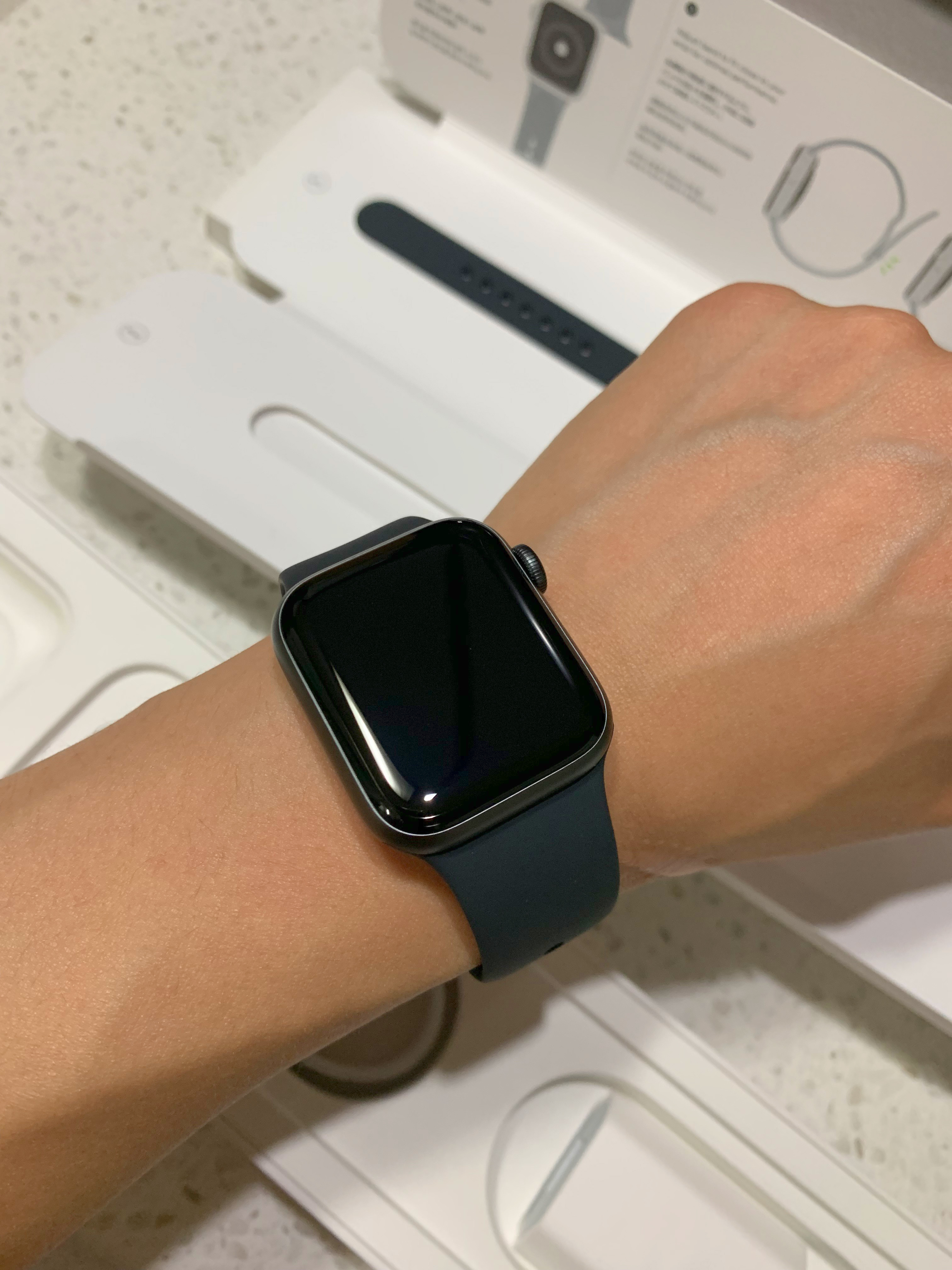 매장에서 44mm 사이즈 애플워치를 착용해봤던 적이 있는데 굉장히 크게 느껴졌었습니다. 누나가 그걸 어떻게 알았는지 40mm 사이즈의 제품을 사 왔습니다.